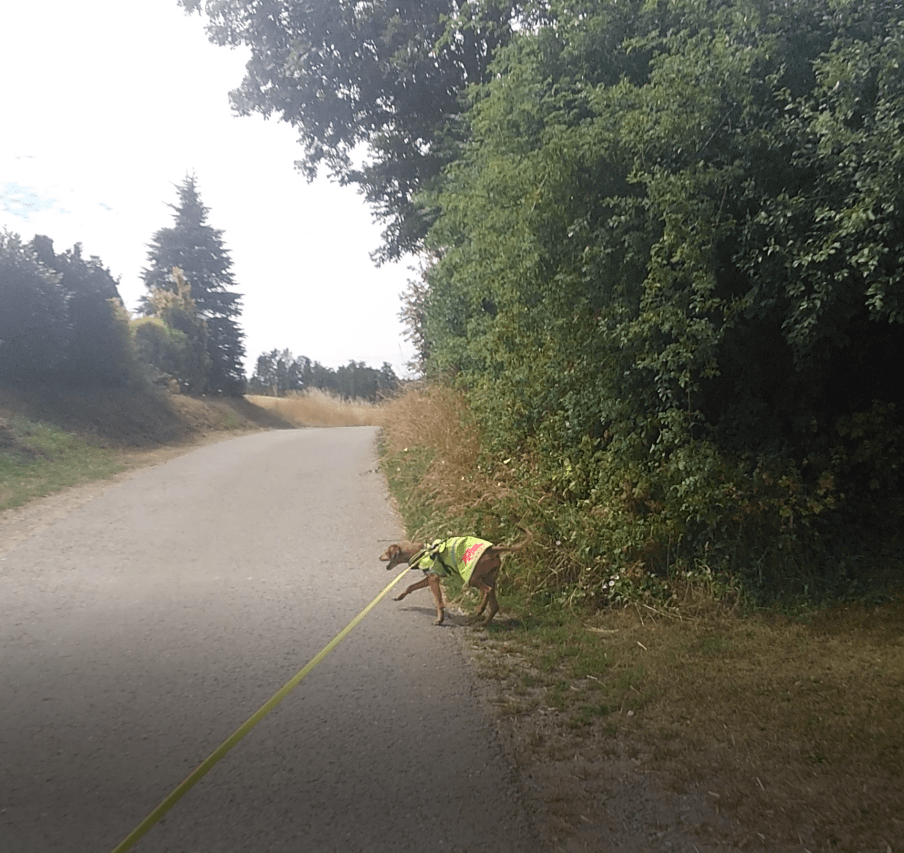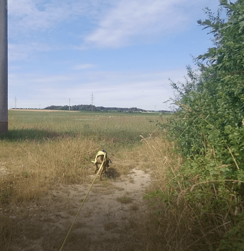Im Dorf wimmelt es nur so vor Ablenkungen: Katzen, Gänse, Frösche, Kühe, Menschen, Traktoren, Autos, andere Hunde, Pipflecken … Wenn es dann noch ordentlich windig ist, kann Trailen schon einmal zu einer echten Herausforderung werden!