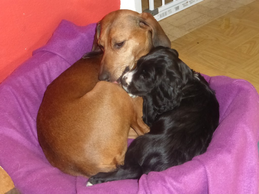 … sind beim Mantrailingtraining kaum zu vermeiden. Und diese Wartezeiten sollen für den Welpen wirklich erholsam sein, damit Gelerntes gut verarbeitet wird und das Training für den Hund keinen Stress bedeutet. Peppi wurde bereits von der Züchterin darauf vorbereitet, mit seinen Geschwistern auch ohne Menschen alleine zu bleiben. Die Mehrhundehaltung ermöglichte uns, dies nahtlos fortzusetzen. Allerdings durfte der Welpe in den ersten Wochen immer zuerst trailen (was ja auch für den Trainingsaufbau Sinn macht) und war dadurch müde und zufrieden, wenn die Wartezeit im Auto anstand.