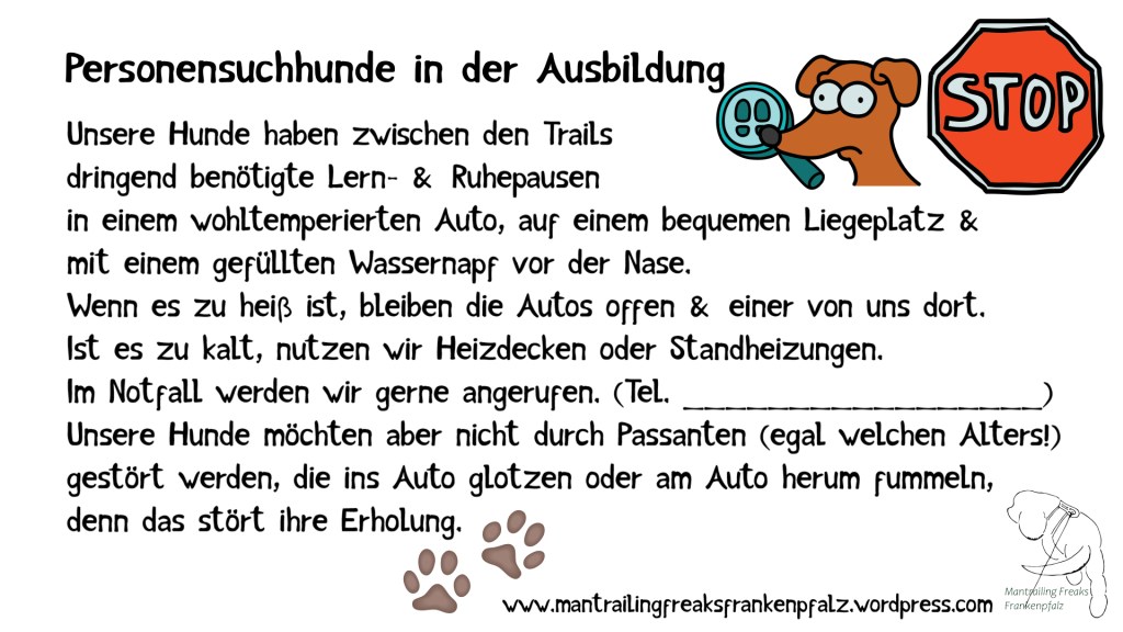 … zum Herunterladen: Du kannst die das Schild anschließend unter die Scheibe legen, ins Fenster kleben oder mit einem Magneten am Auto befestigen, damit sich dein Hund während der Pausen ungestört erholen kann.